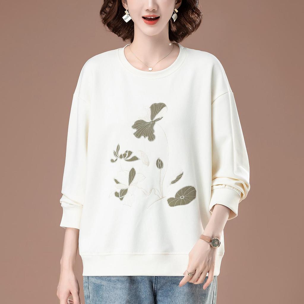 Обновите свой сезонный гардероб этим стильным свитшотом большого размера с вышивкой, созданным для носки весной и осенью.. Изготовлено из высококачественного хлопка, обеспечивает мягкую и дышащую посадку. Этот свитшот свободного силуэта, с длинными рукавами и классическим круглым вырезом горловины, сочетает в себе комфорт и непринужденный шик.. Изысканная вышивка добавляет нотку элегантности, что делает его универсальным выбором для повседневных прогулок или непринужденных встреч.
