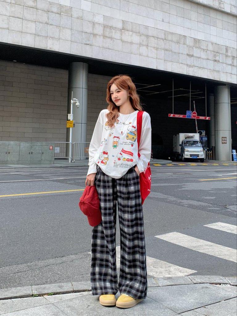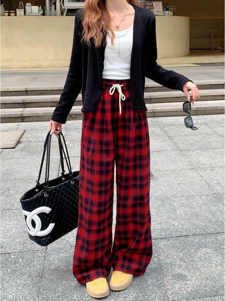 Обновите свой осенний гардероб этими модными женскими клетчатыми брюками с высокой посадкой.. Эти брюки, изготовленные из высококачественного полиэстера, сочетают в себе комфорт и стиль.. Свободный прямой крой обеспечивает расслабленную посадку, что делает их идеальными для повседневных выходов.. Их универсальный клетчатый узор легко сочетается с разнообразными топами, позволяя вам без труда создавать множество образов.. Идеальные для тех, кто любит сочетать комфорт с модой, эти брюки — обязательная вещь сезона.