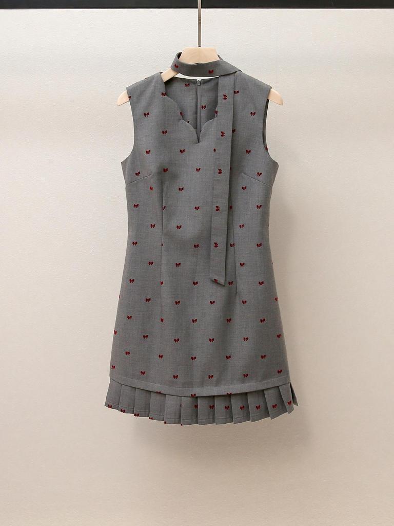 Высококлассное женское осеннее плиссированное платье-жилет с принтом банта французской наследницы