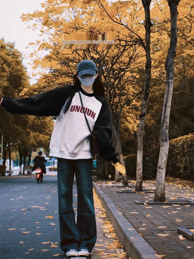 Женский свитшот с рукавами реглан на осень с логотипом на заказ - Свободный топ с длинным рукавом