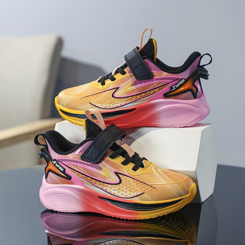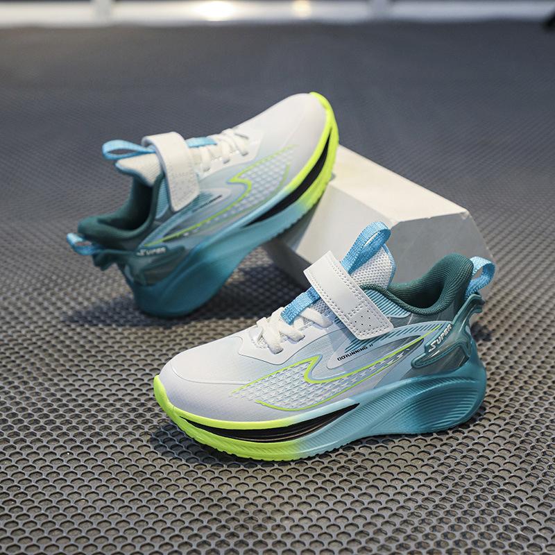 Boys' sports shoes medium and older children's leather surface school Velcro running shoes lightweight wear-resistant protective versatile runn