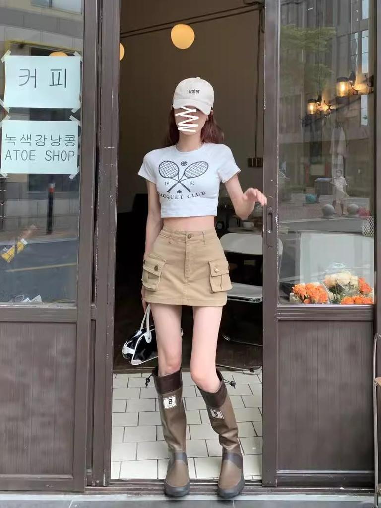 Khaki High-Waist A-Line Denim Skirt - Slim, Retro, Summer Style for Women