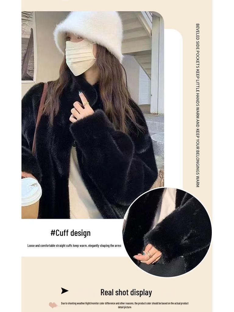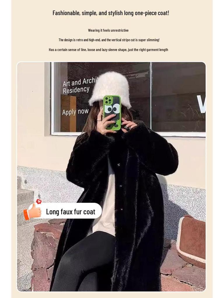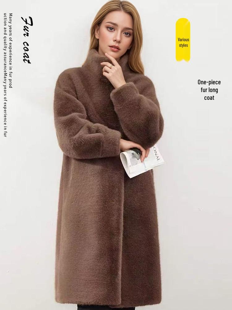 Осенне-зимнее длинное шерстяное пальто «социалитка» из кожи и меха со стойкой