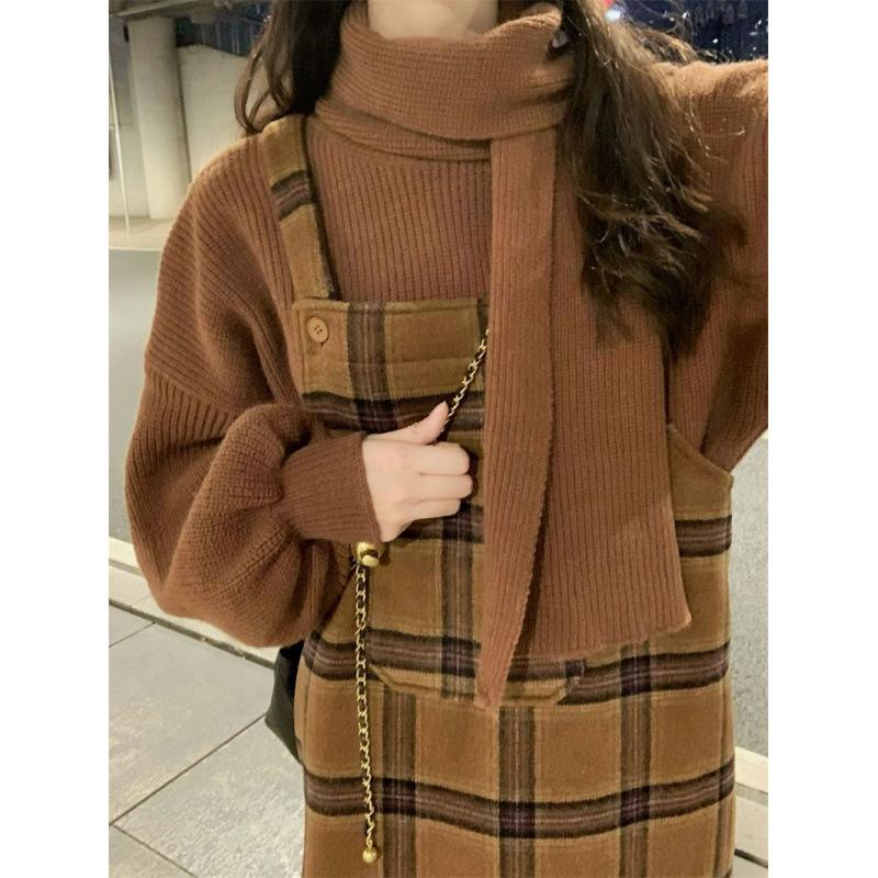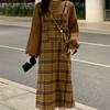 Сладкое соленое платье-сарафан в клетку с цветными блоками и комплект свитера с длинным рукавом для весны/осени
