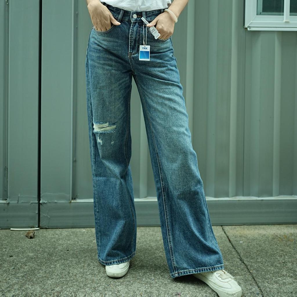 Джинсы буткат с завышенной талией и рваными деталями – американский ретро осенний стиль
