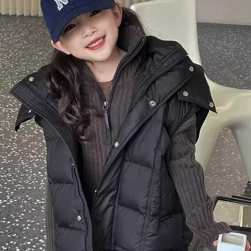 Утепленный пуховым хлопком жилет для девочек - Осень/Зима 2025 Теплая куртка без рукавов для девочек-подростков