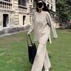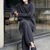 Women's Slit Sweater & Wide Leg Pants Set - Korean Style Casual Two-Piece for Autumn/Winter — купить товар онлайн с бесплатной доставкой по всему миру!