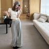 Женские серые брюки с высокой посадкой, на флисовой подкладке, с широкими штанинами – Весенне-осенние, повседневные и теплые
