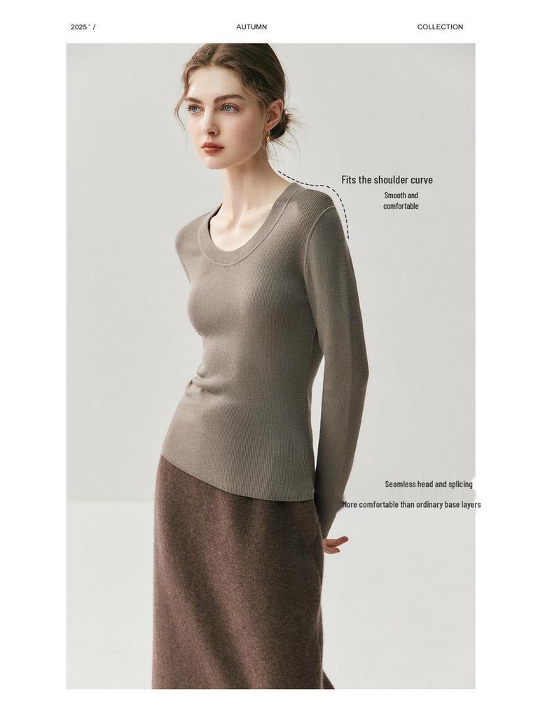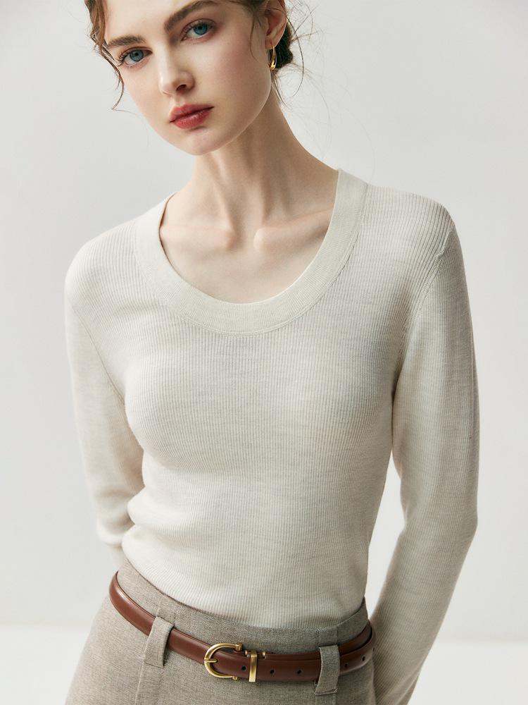 Женский облегающий свитер с U-образным вырезом — тонкая мериносовая шерсть, коллекция осень/зима