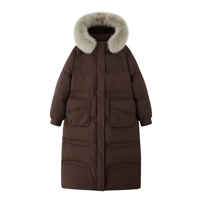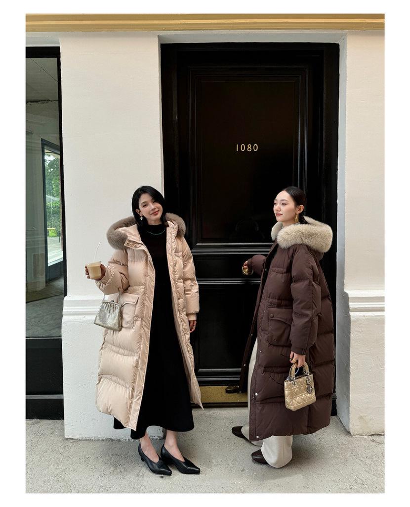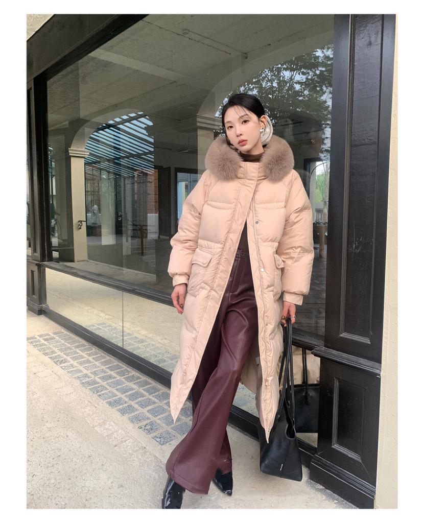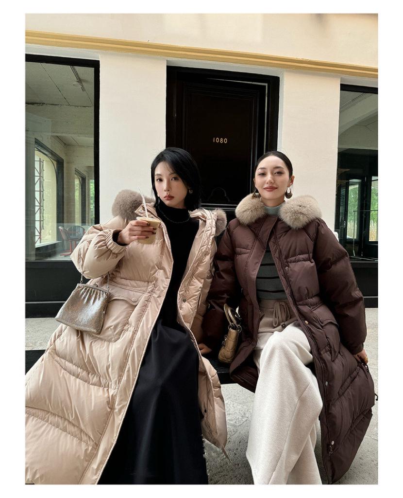 Женский длинный пуховик с капюшоном и натуральным мехом лисы, 90% пух белой утки, длиной ниже колена, толстый и теплый