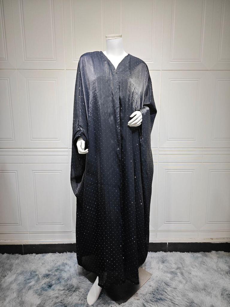 MQ197 Скромный дубайский набор абайи: Длинное пальто-халат с деталями из горячей фиксации и головным платком