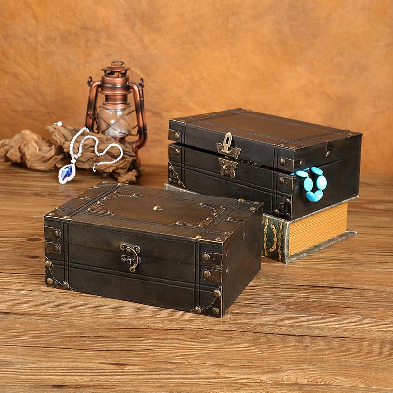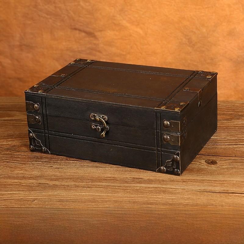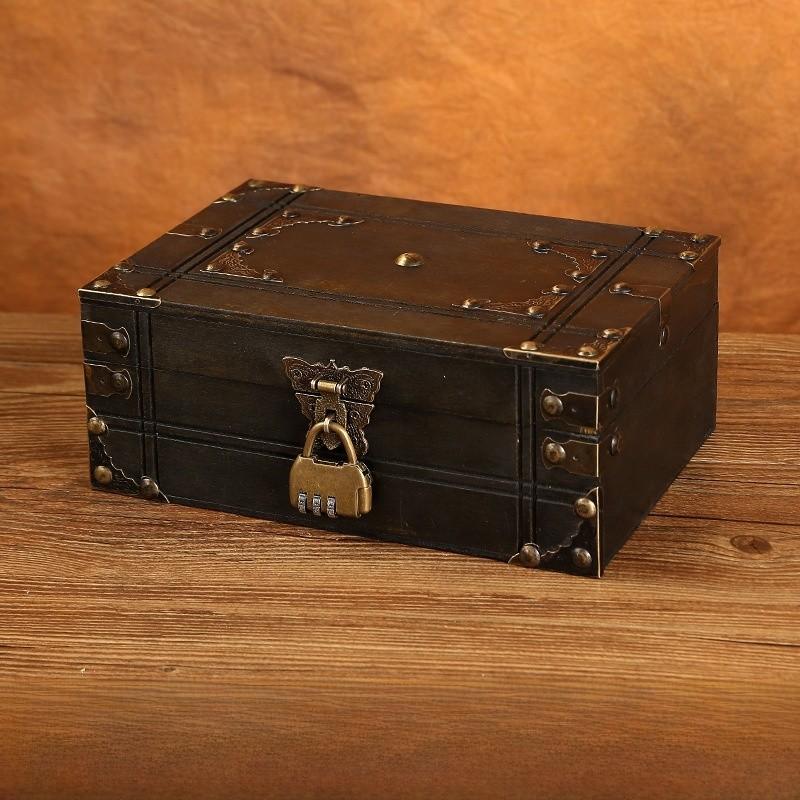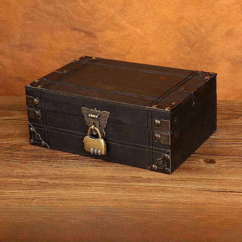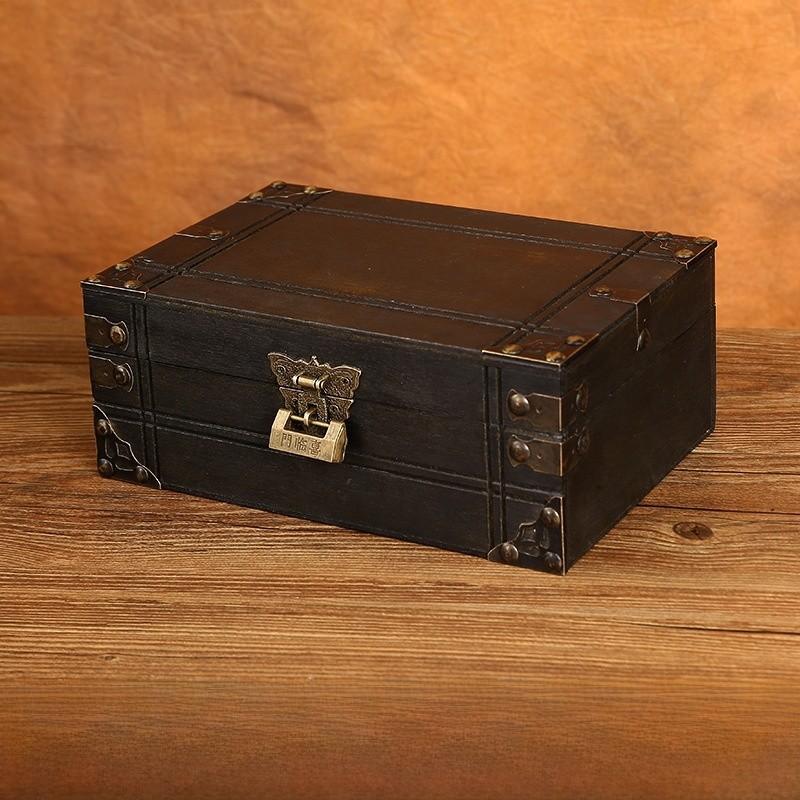 Винтажная деревянная квадратная коробка для хранения в китайском стиле с замком для органайзера на стол