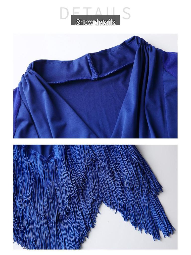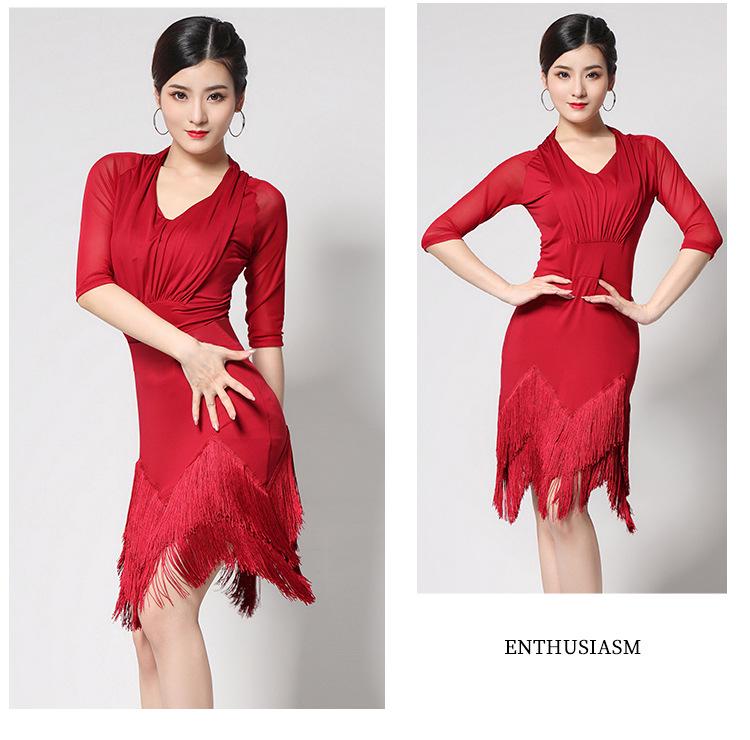 Huayu Dance Латинское сетчатое платье с жемчужной бахромой для бальных танцев