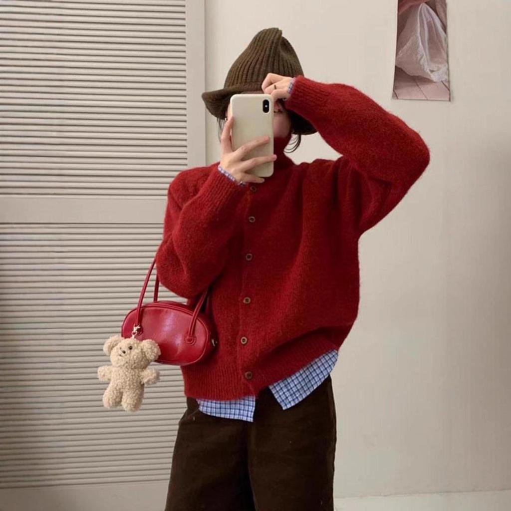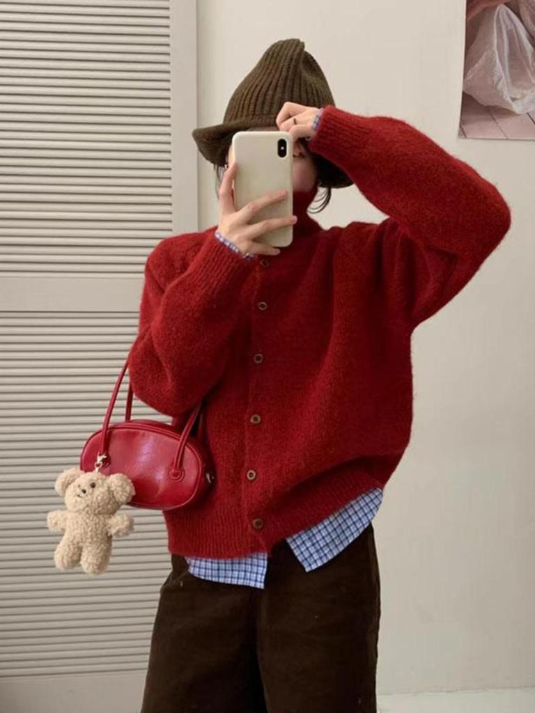 Корейский осенне-зимний свободный трикотажный кардиган-свитер с высоким воротом для женщин