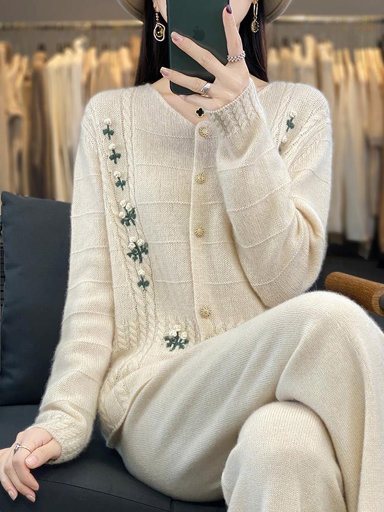 Кардиган из вышитой шерсти в корейском стиле, с высоким дизайном, с круглым вырезом, с длинным рукавом, трикотажное изделие для весны и осени — купить товар онлайн с бесплатной доставкой по всему миру!