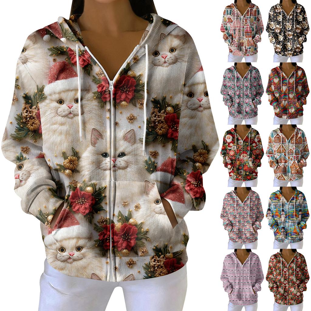 Женская повседневная модная вязаная толстовка с длинными рукавами и застежкой-молнией, с рождественским принтом — купить товар онлайн с бесплатной доставкой по всему миру!