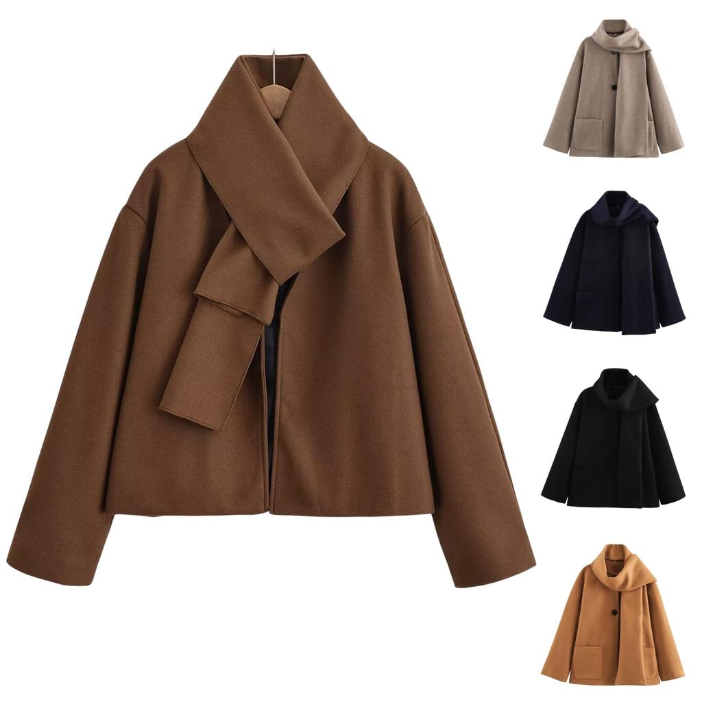 Модное женское повседневное шерстяное пальто-жакет со съемным шарфом — купить товар онлайн с бесплатной доставкой по всему миру!