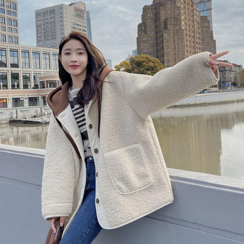Пальто для женщин на осень и зиму, плюс бархатное и утолщенное, с капюшоном, свободное и универсальное, новое корейское хлопковое пальто для женщин