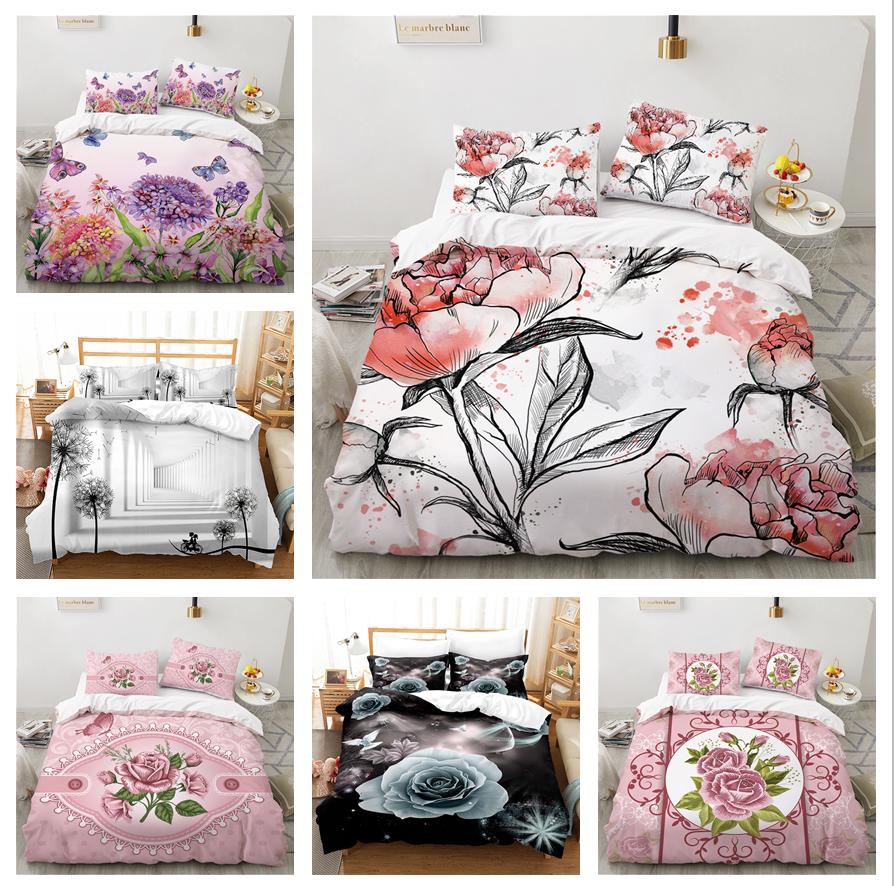Комплект постельного белья с 3D-цветком для женщин и девочек, пуховый пододеяльник, наволочка 2/3 шт., кровать размера «king-size», роскошный домашний текстиль, комплект пододеяльников в подарок