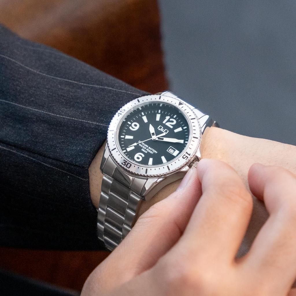 Аналоговые часы Citizen с батарейкой Водонепроницаемые Металлические Серебристые Q&Q Мужские 10 лет службы, Браслет, (А24А-003ПК)