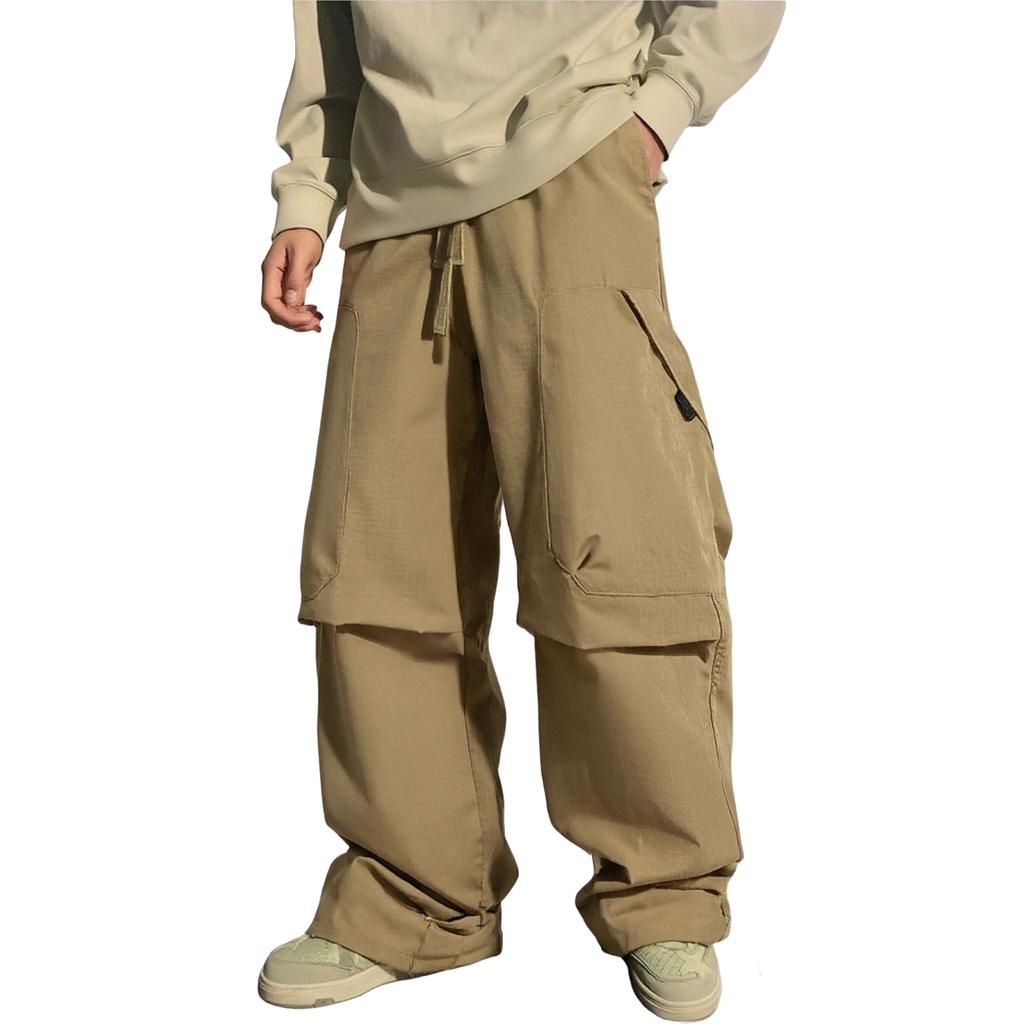 Мужские повседневные однотонные брюки карго с несколькими карманами, мужские брюки с защипами на коленях, эластичной талией и свободными прямыми штанинами