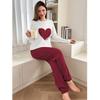 Весна Осень Женская Пижама Комплект с Длинным Рукавом Топ с Сердечками и Длинные Брюки Комплект из 2 Предметов Пижамный Комплект Повседневная Домашняя Одежда Одежда для Отдыха
