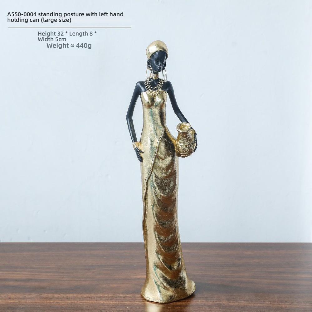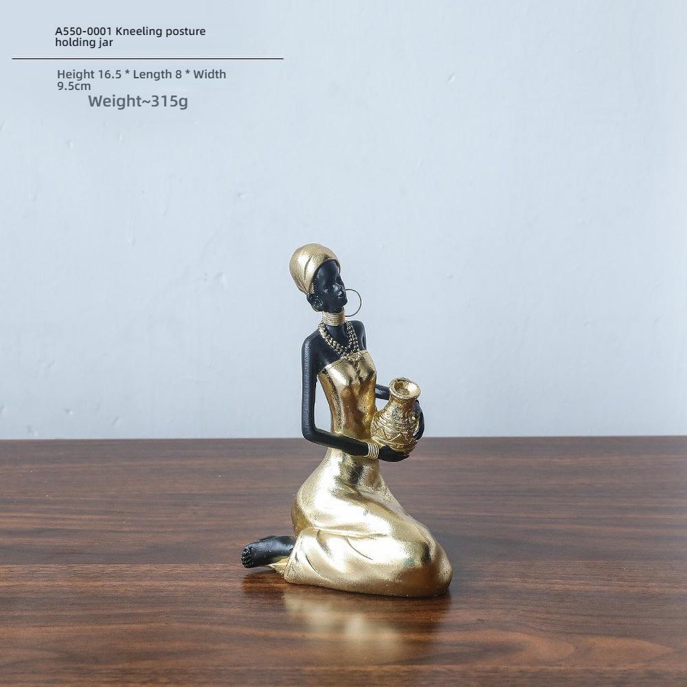 Африканская Женщина Статуэтка из смолы - Ручная работа Скульптура Матери-Прародительницы, Племенной Домашний Декор с Кувшином для воды, Подарок для Офисного Стола