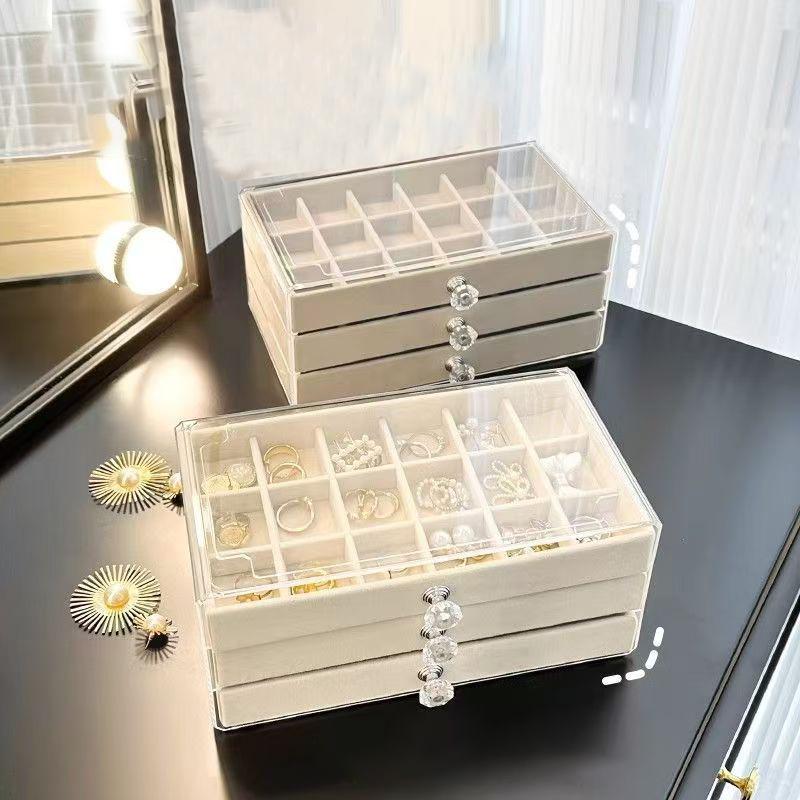 Акриловая шкатулка для украшений с 3 ящиками, бархатный органайзер для украшений, витрина для сережек, колец, ожерелий, браслетов, подарок для женщин, девочек