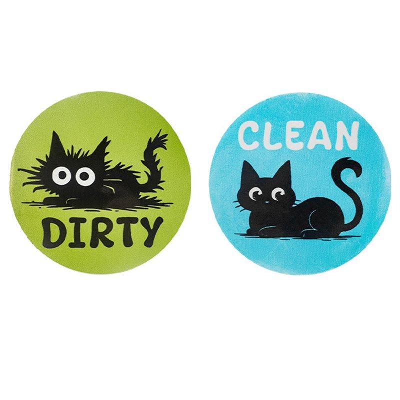 Тренд 2025 Двусторонний Переворачивающийся Магнитный Знак Чисто/Грязно Для Кошек - 2 шт. Смешные Магнитные Таблички-Перевертыши для Посудомоечной Машины для Кухни
