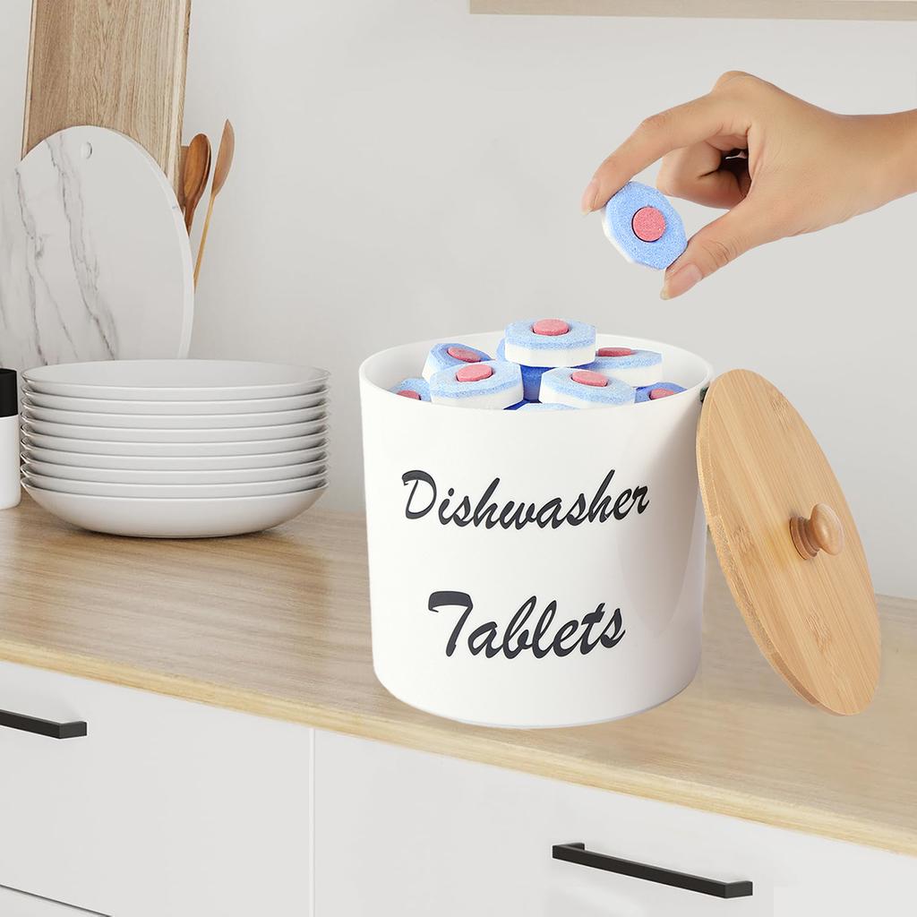 Контейнер для капсул для посудомоечной машины с бамбуковой крышкой, акриловый ящик для хранения, контейнер для моющего средства для посудомоечной машины, органайзер для планшетов на кухне фермерского дома