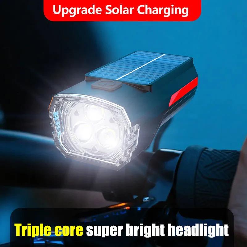 Solar Power Bike Front Lamp USB Rechargeable Cycling Flashlight Waterproof 3 Level Dimmable for Cycling Accessories Night Riding