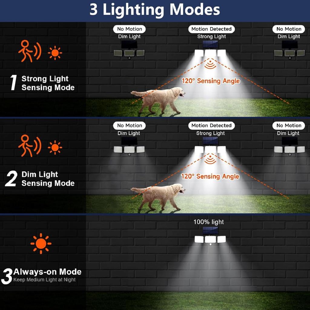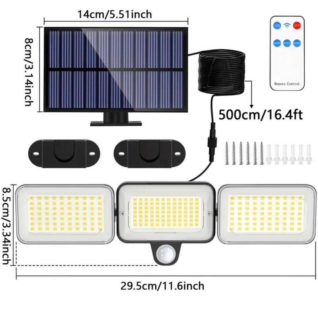 1/2/4 шт. Уличные солнечные фонари с 224 светодиодами, датчиком движения, пультом, 3 режимами, водонепроницаемые, 3-головочные солнечные прожекторы для двора сада