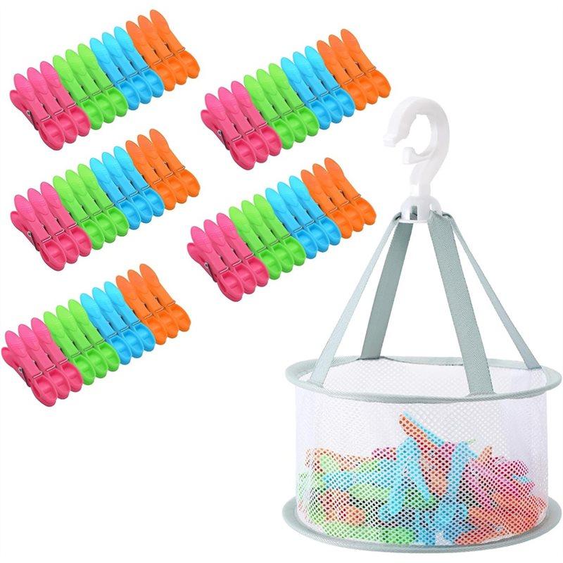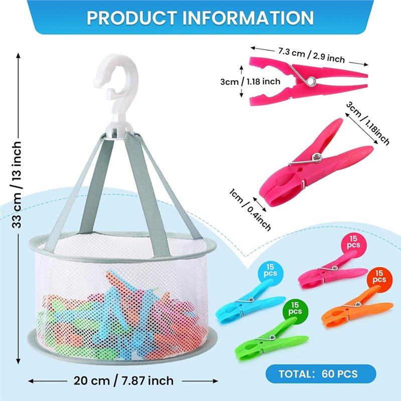 2025 Trend Breathable Mesh For Clothes Pegs, Sock Clips Included-Pack Of 60 For Clothes Pegs With Peg Basket For Hanging Basket