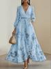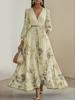 Женское платье макси с V-образным вырезом, длинными рукавами и цветочным принтом, элегантное платье А-силуэта с оборками по подолу и поясом