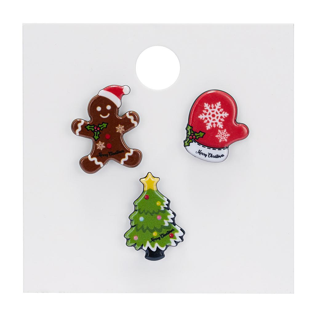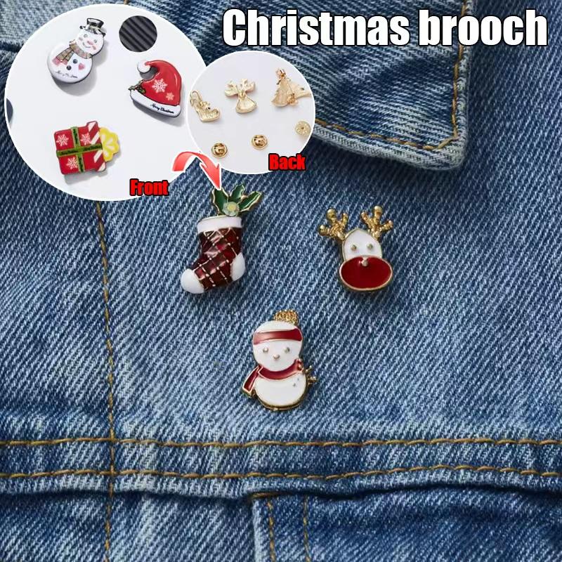 3pcs/set Christmas Brooch Set Elf Snowman Stocking Enamel Rhinestone Party Gift