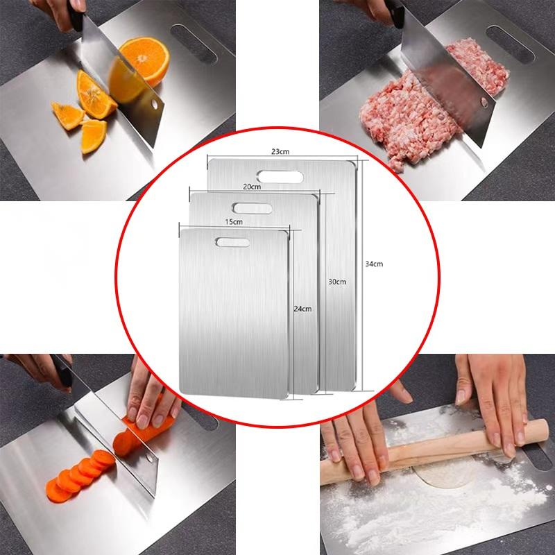 Кухонная разделочная доска из нержавеющей стали, двусторонняя разделочная доска пищевого класса для мяса, фруктов и теста — купить товар онлайн с бесплатной доставкой по всему миру!