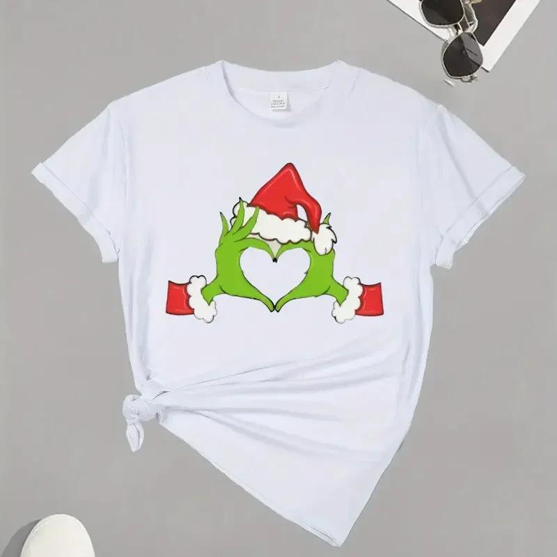 Рождественский принт, круглый вырез, спортивная футболка, короткий рукав, повседневные топы, женская спортивная одежда, женский рождественский подарок, футболка, топы
