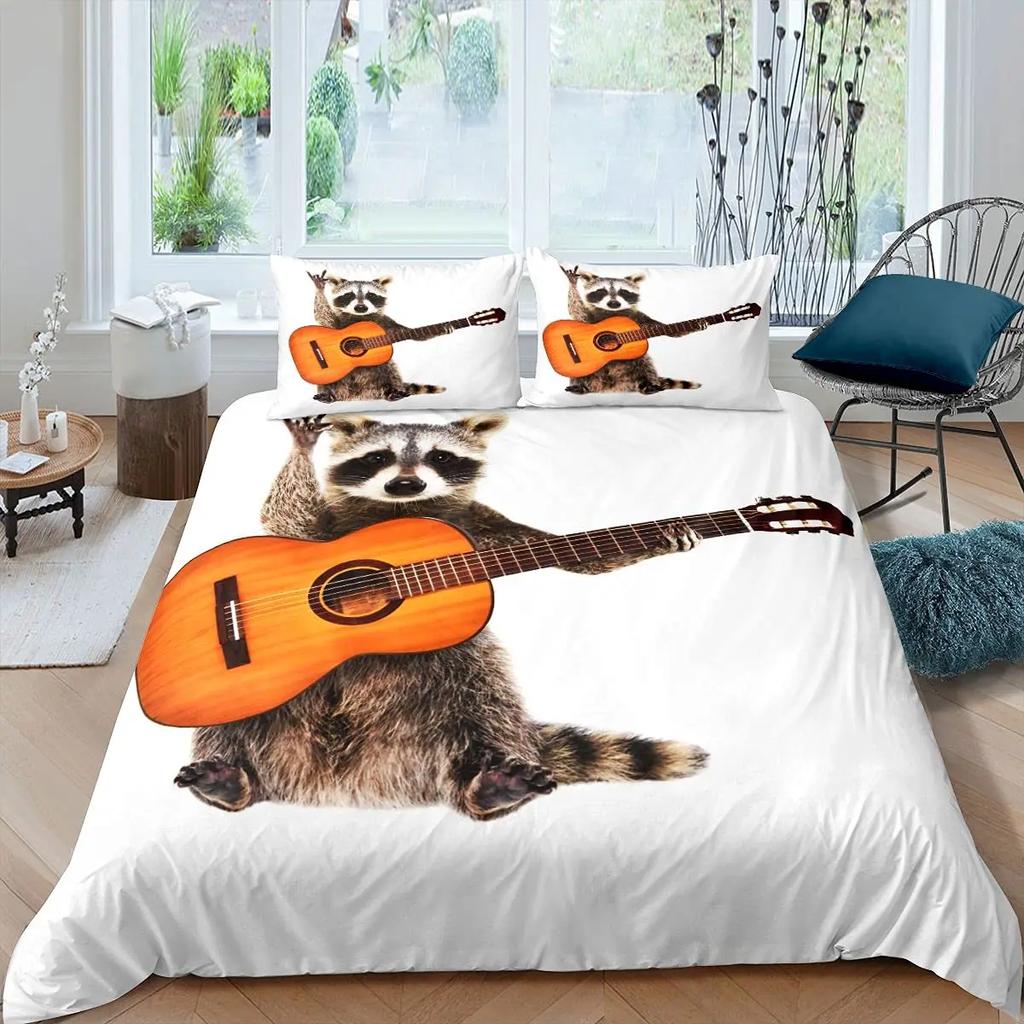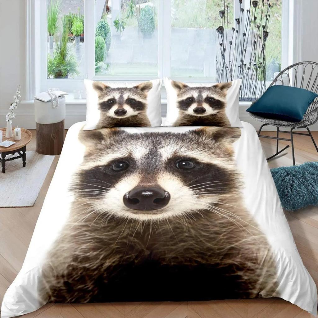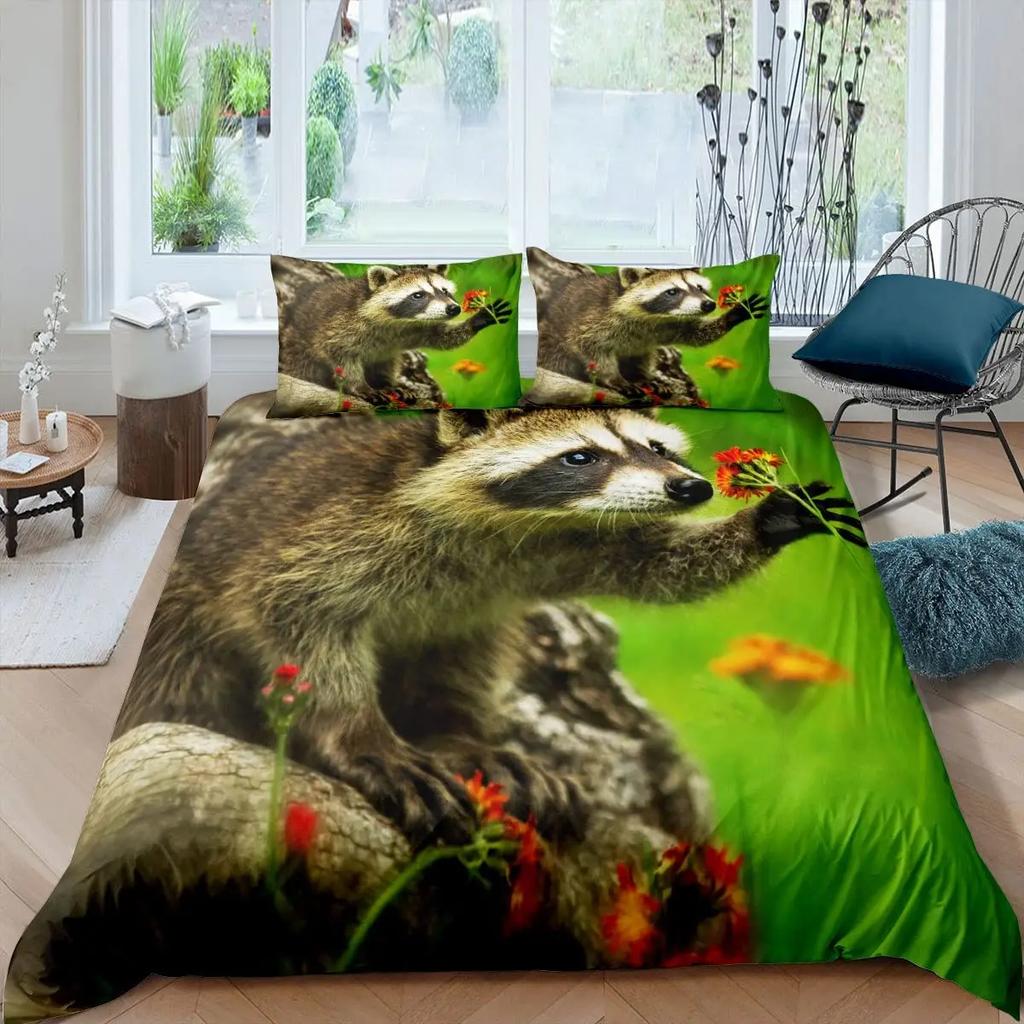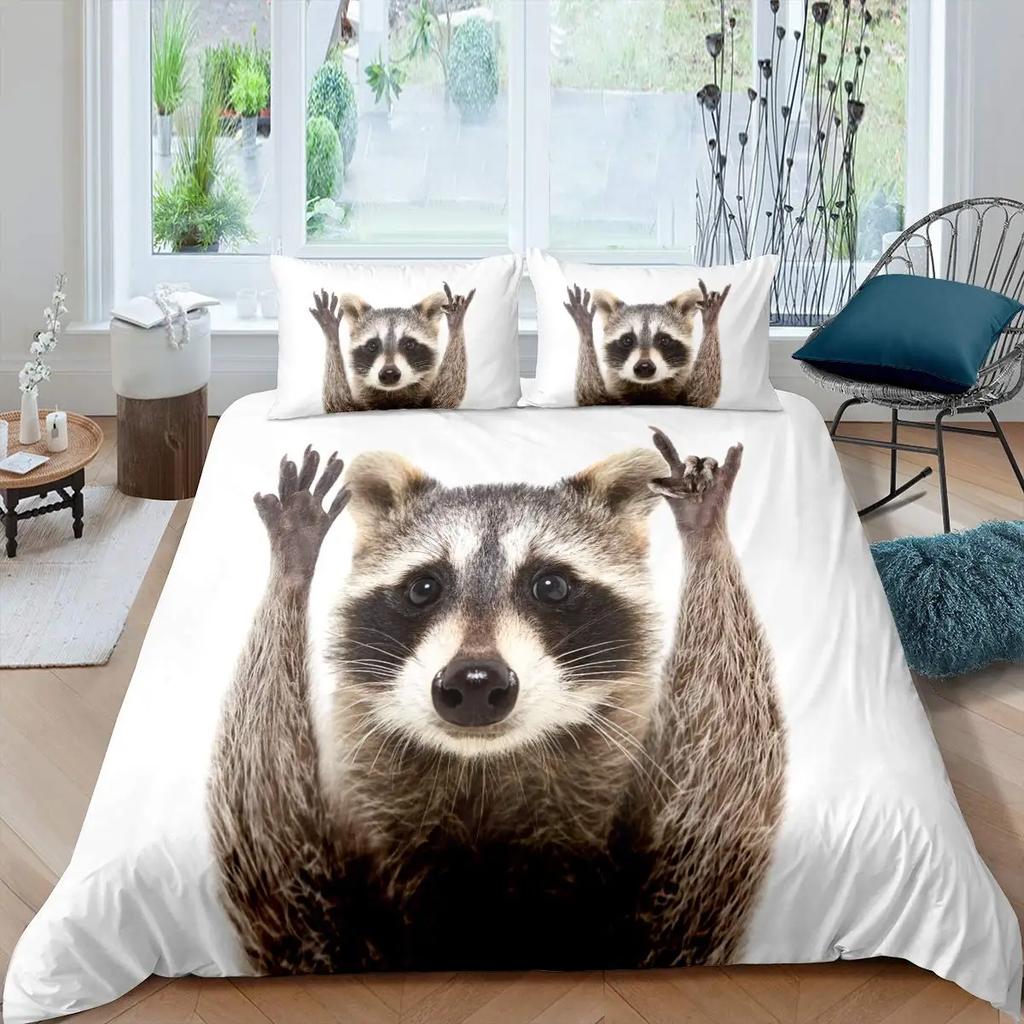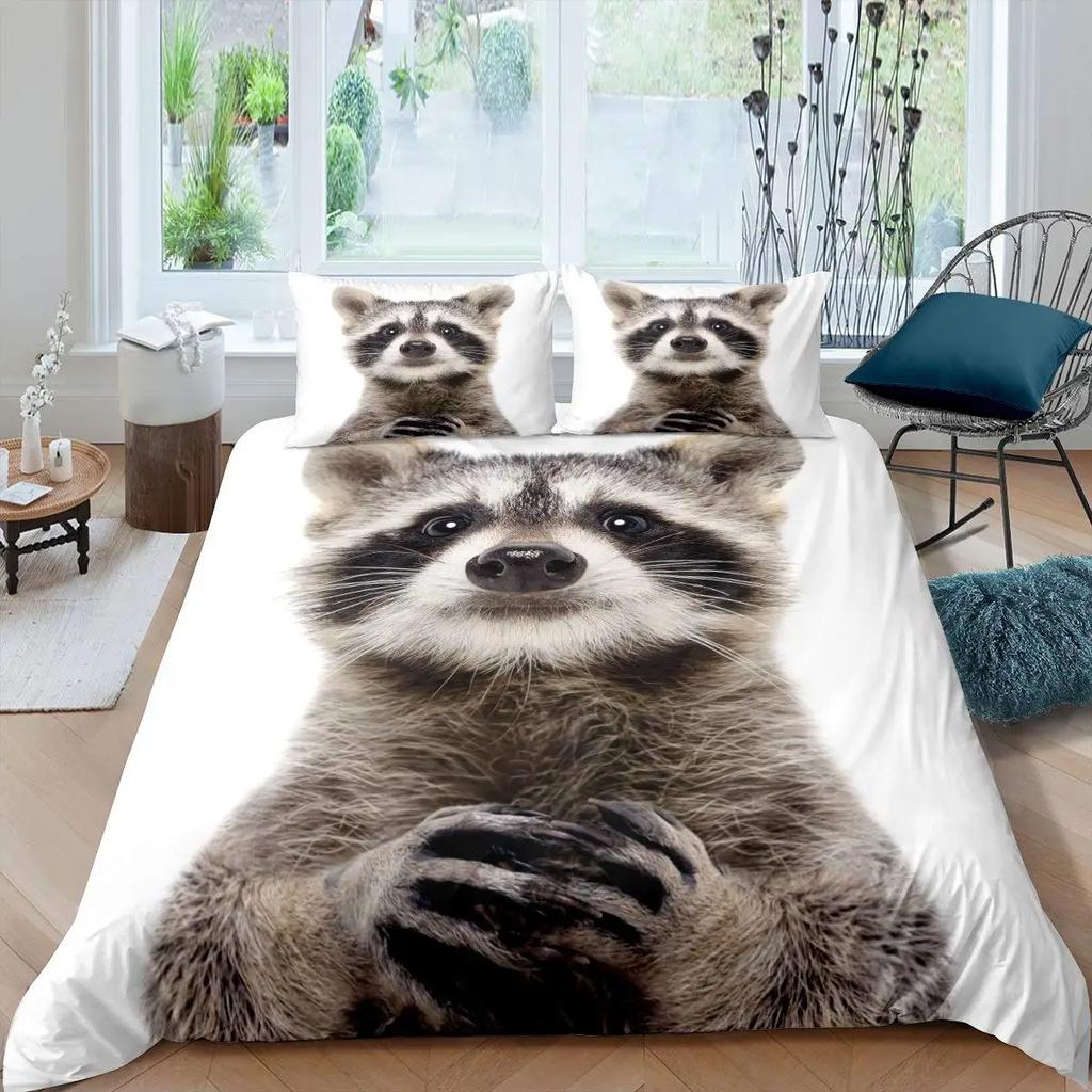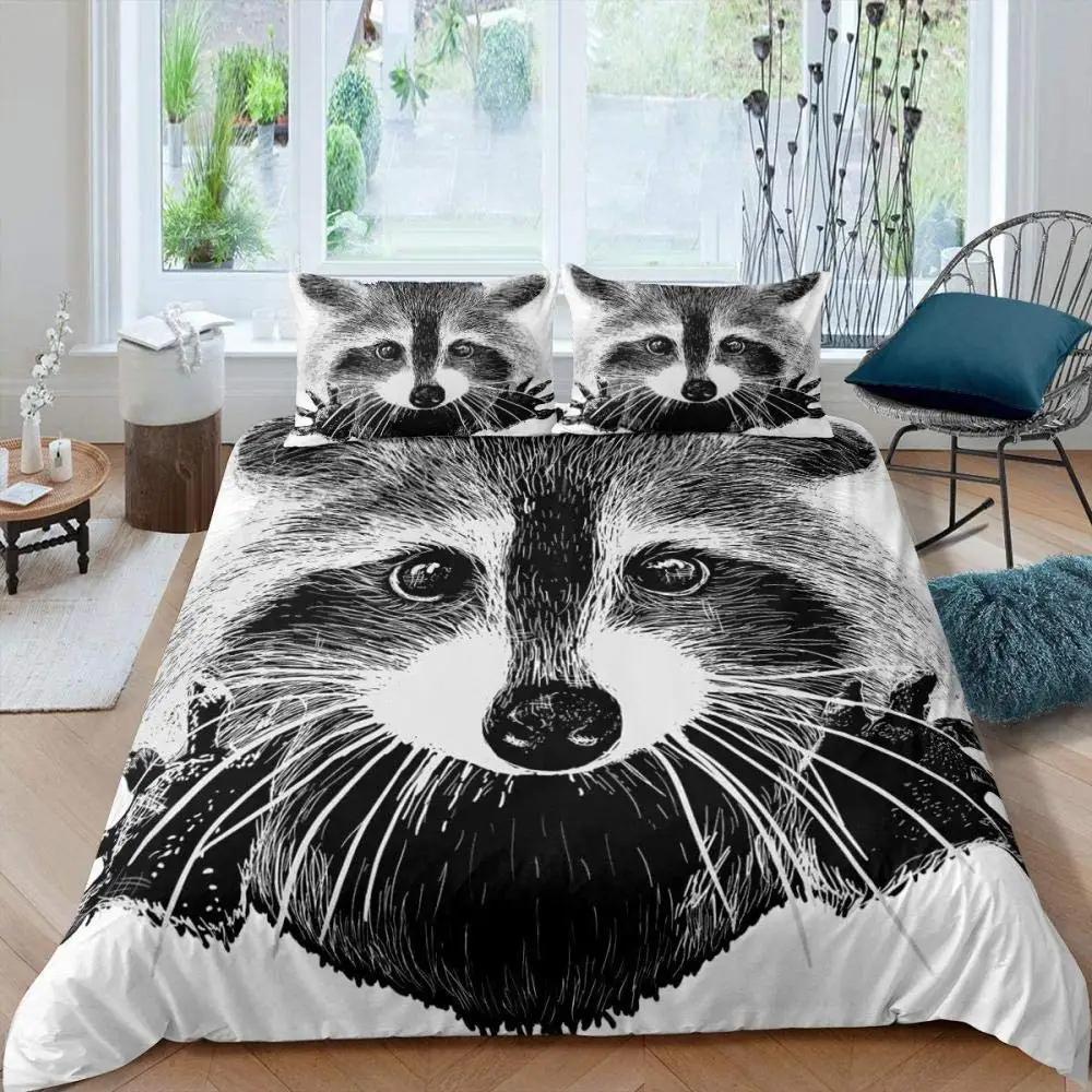Комплект постельного белья с изображением енота, милый комплект постельного белья с изображением животных, одеяло в стиле дикой природы, покрывало из полиэстера размера «king size»