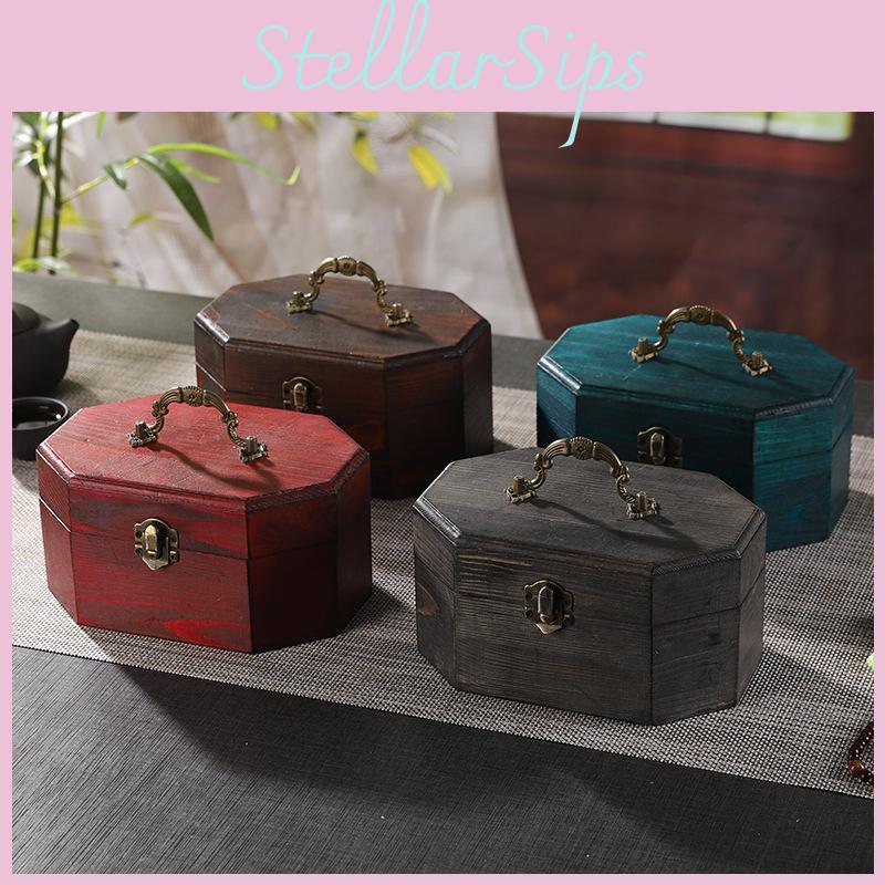 Китайская шкатулка для хранения в восьмиугольном стиле из дерева для украшений, органайзер для чая, закусок