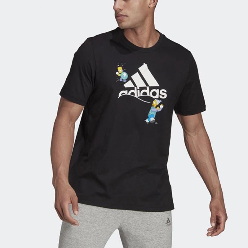 Adidas Повседневная футболка с короткими рукавами и принтом аниме с круглым вырезом, мужские топы, черные GS6314