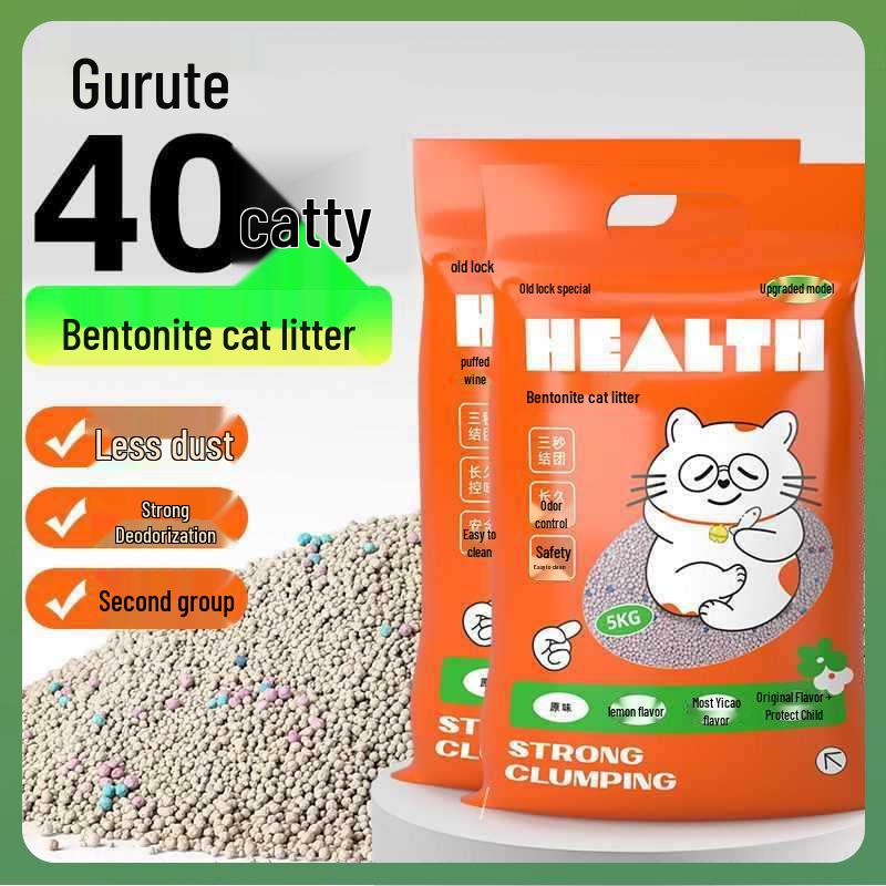 Бентонитовый дезодорирующий кошачий наполнитель, мало пыли, 40 цзинь, большой мешок, минеральный песок, 20 цзинь