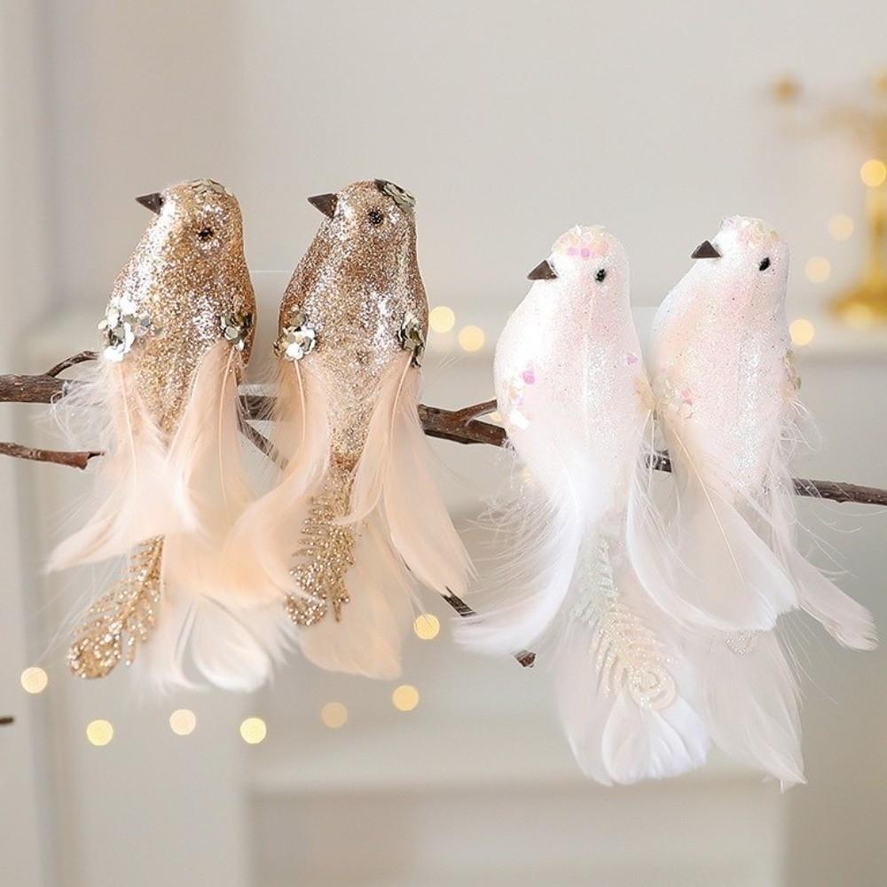 Realistic Christmas Tree Pendants White Doves Feather Birds Ornaments Wedding Decoration