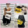 Холщовая сумка через плечо на кулиске с детским узором, с нашивными деталями, для ежедневного использования