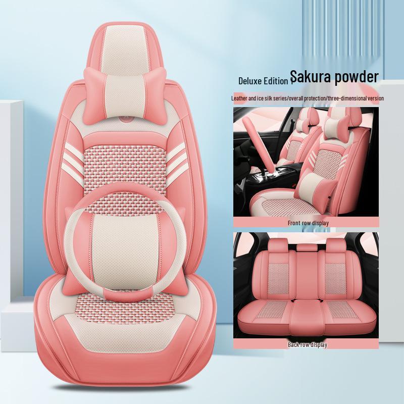 Высококачественная наппа кожа Ледяной шелк Подушка на сиденье автомобиля - Универсальная посадка, Роскошный летний комфорт.