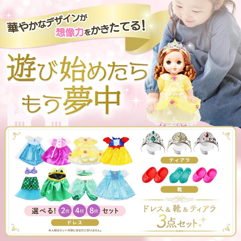 Princess Dress, Dress-Up, Shoes, and Tiara Set (2 outfits, 4 pieces) - Fits dolls 25-26cm (approx. 9-10 inches) - Compatible (Set B)