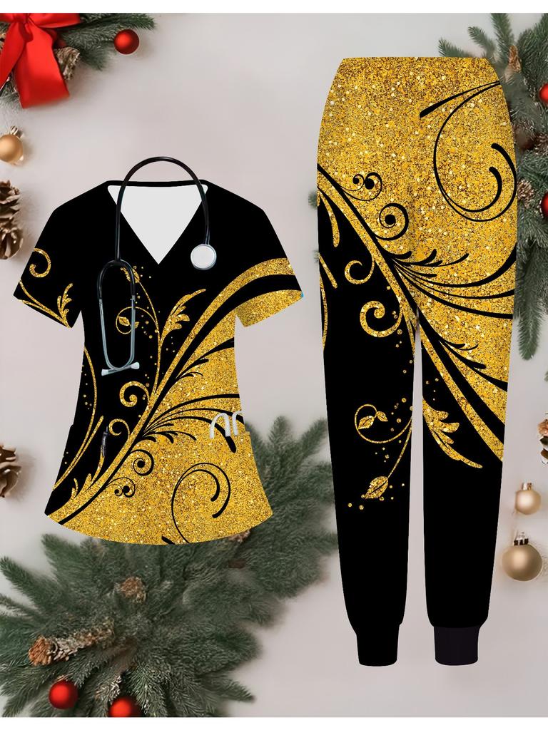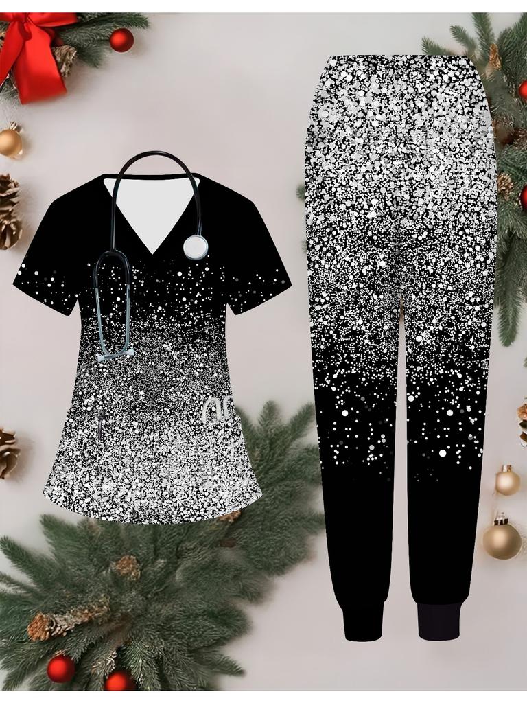 Комплект женской формы медсестры, напечатанный на 3D-принтере, с коротким рукавом и длинными брюками с карманом, повседневный, модный, рождественский подарок