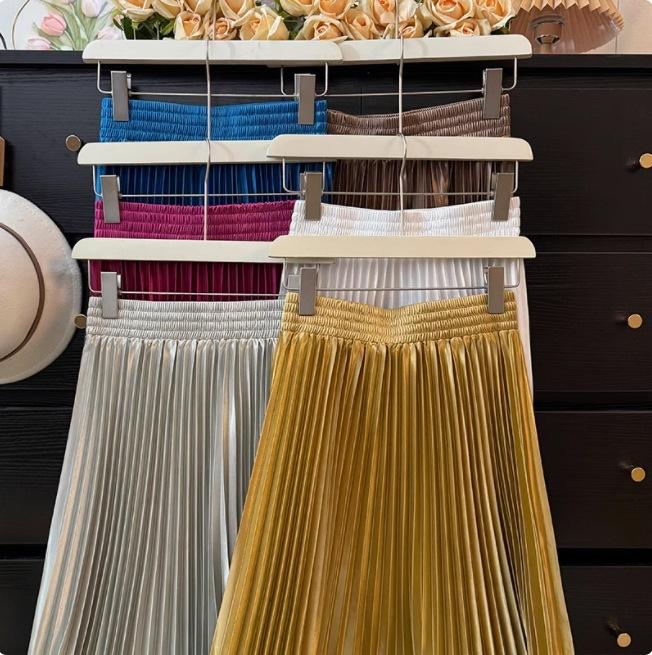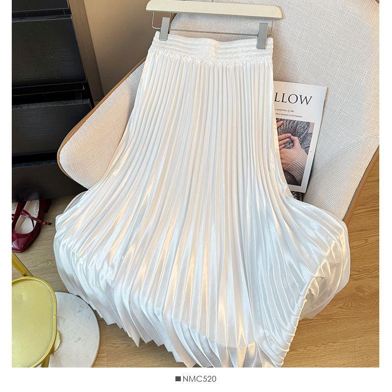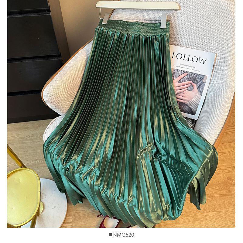 Женская однотонная атласная плиссированная юбка миди с высокой талией и расклешенным подолом
