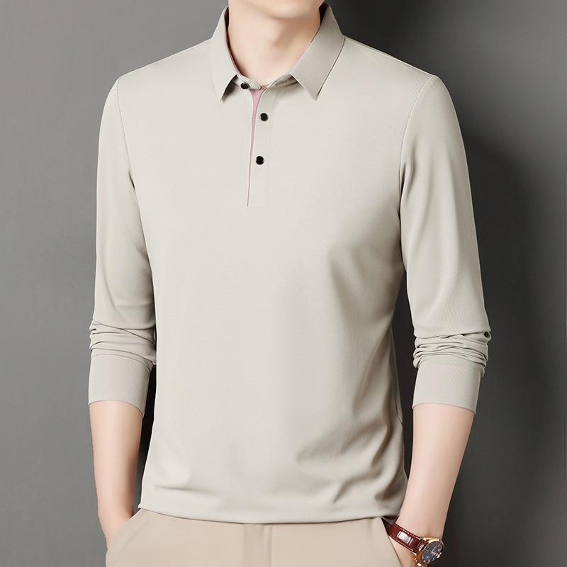 Весна Мужская рубашка с длинным рукавом Футболка с воротником Мужская однотонная тонкая повседневная базовая рубашка Мужская футболка