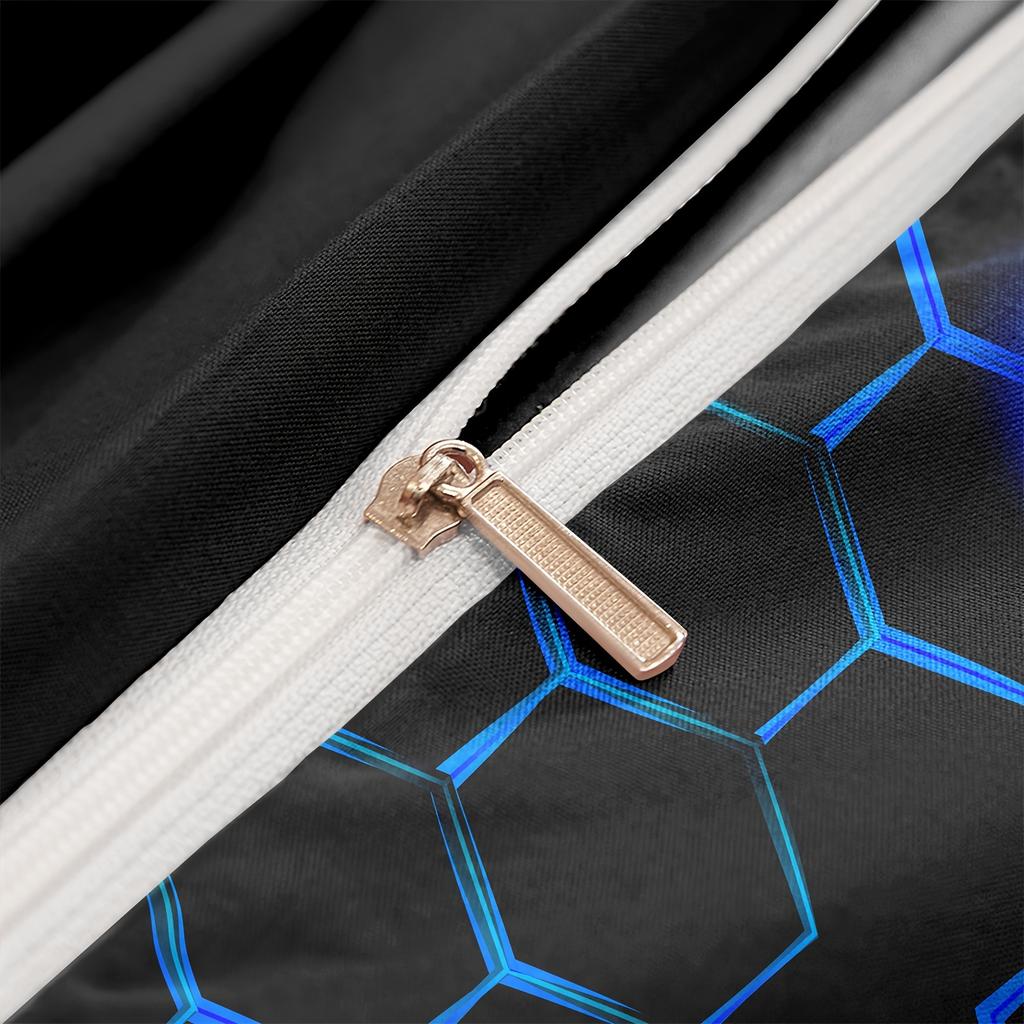 Soft Comfortable 3D Print 3pcs Blue Black Geometric Honeycomb Pattern Quilt/Doona/Duvet Cover Set - Bedding Set for Bedroom