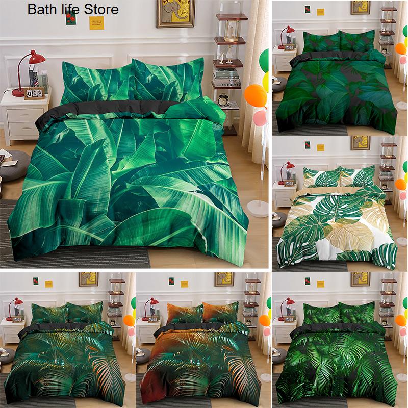 3D Printed Duvet Cover Set with Pillowcases Tropical Rainforest Bedding Set Green Tropical Plants Leaves Printed Bedding Set — купить товар онлайн с бесплатной доставкой по всему миру!